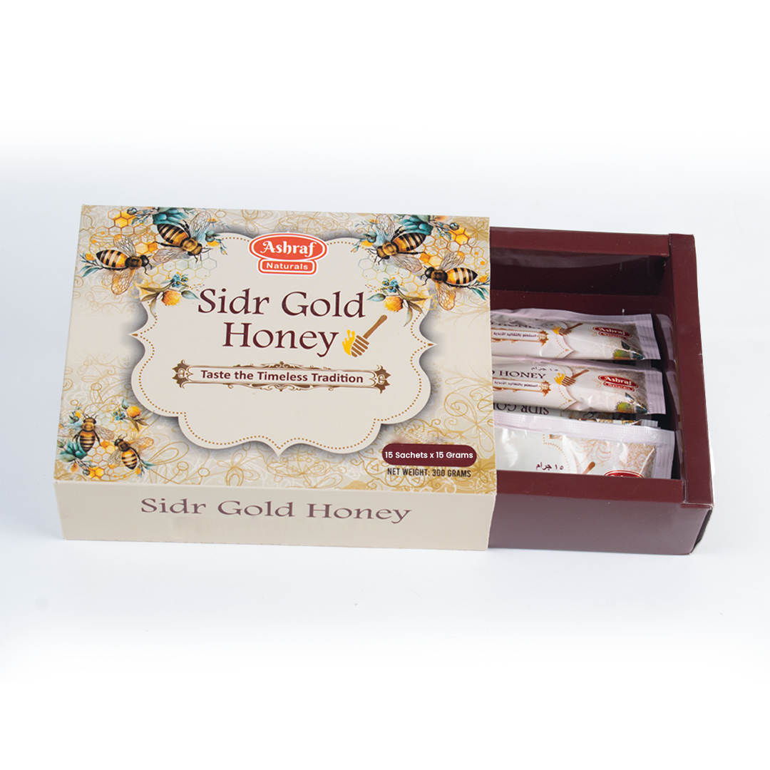 For centuries, Sidr Honey has been revered as a symbol of purity and excellence, a treasure passed down through generations. Sourced from the lush Sidr groves of Kohat and Karak, our Sidr Gold Honey captures the essence of this ancient tradition, delivering a rich flavor and velvety texture that elevates every moment.