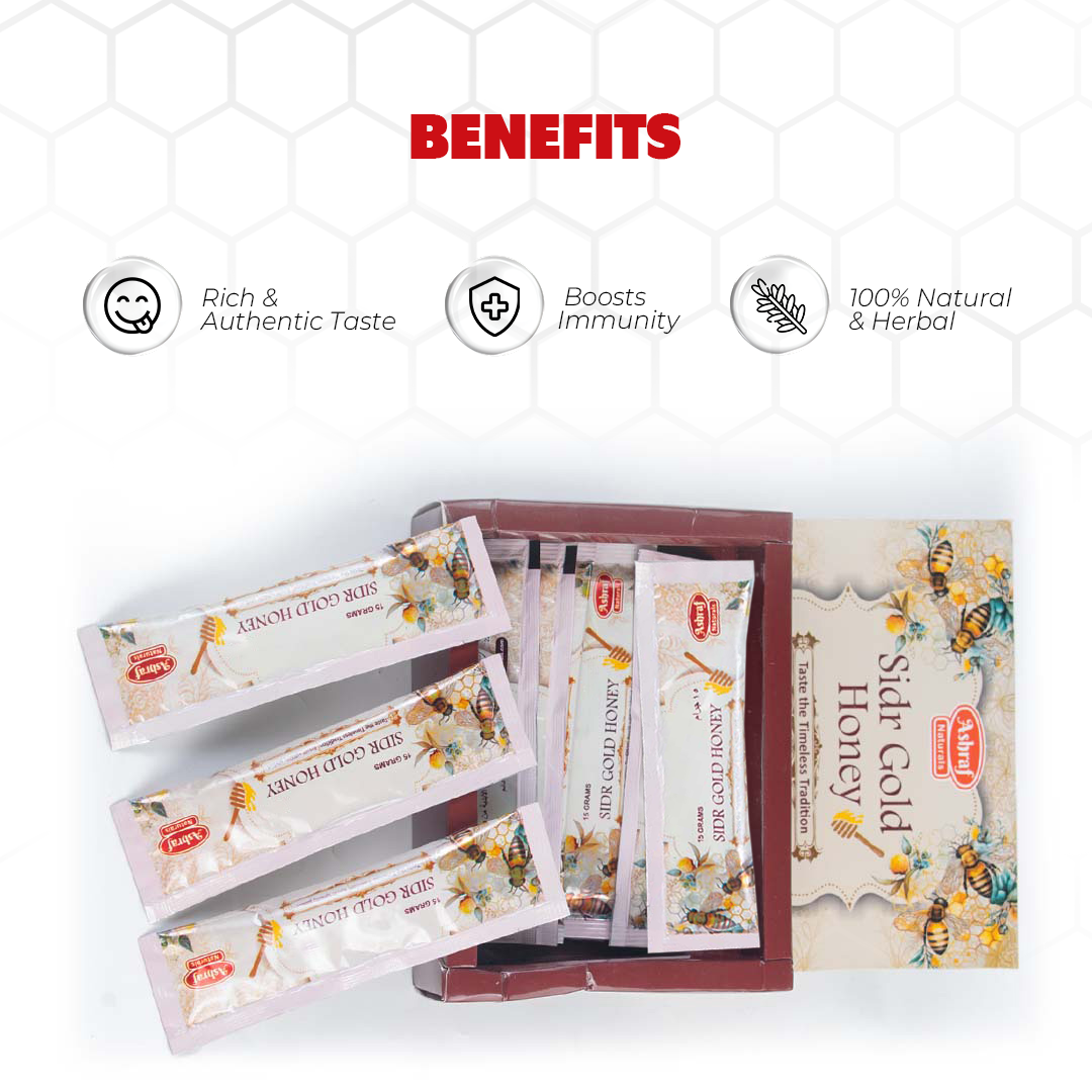 Let Sidr Gold Honey take you on a journey through centuries of tradition. Elevate your wellness, enjoy its rich taste, and add a touch of elegance to your daily life.